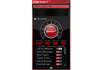 Il meter al centro dell'interfaccia ti mostra l'efficenza del tuo sistema operativo prima e dopo il lancio di GBoost, ed è quindi un ottimo indicatore per capire con un colpo d'occhio quanto il boost abbia giovato al tuo PC.